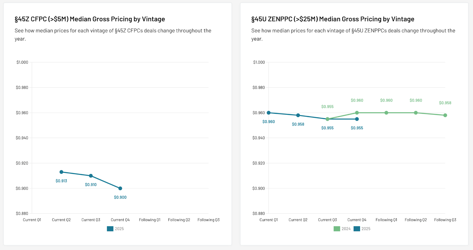 Overall, our data highlights two seemingly divergent trends: (1) softened demand for 2025 tax credits alongside (2) increased market maturity and liquidity.